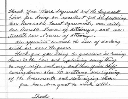 Attorney Ingersoll prepared wills for my husband and I 5 yrs. ago and we