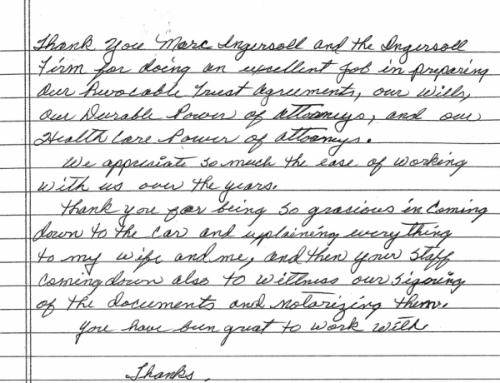 years regarding estate planning. Mr. Ingersoll is a pleasure to work with and